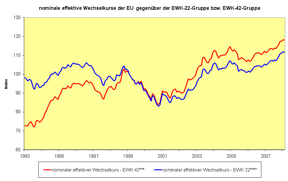 nominale effektive wechselkurse der EU gegenüber den EWK 22 und EWK 42 |