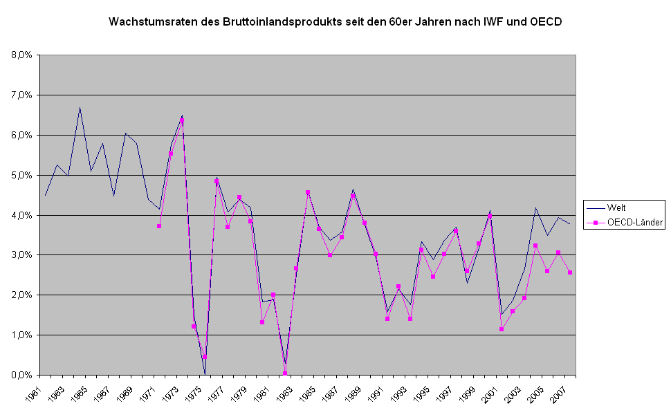| aktuell | 19:50, 16. Mai 2009 | 970 × 603 (28 KB) | 072bw313 (Diskussion | Beiträge) | {{Information |Beschreibung = '''English:'''Growth rate of Gross domestic Product of World and OECD-Total. Data source is The World Bank Group and the OECD. From OECD Statistics Page: "Current Query: GDP, US $, constant prices, constant PPPs, reference ye |