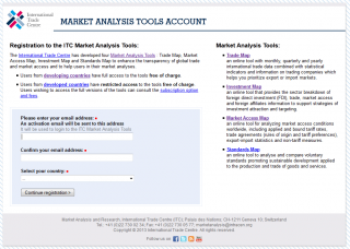 | aktuell | 17:05, 15. Nov. 2014 | 1.001 × 714 (109 KB) | Sir Ralf (Diskussion | Beiträge) | {{Information |Beschreibung = Registration to the ITC Market Analysis Tools |Quelle = http://mas-admintools.intracen.org/accounts/Registration.aspx |Urheber = |Datum = |Genehmigung = |Andere Versionen = |Anmerkungen = }} | |
