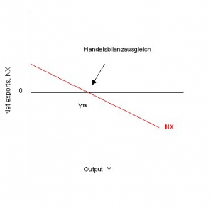 Bezüglich dieser Annahmen hat die Handelsbilanz eine negative Steigung in Relation zum Einkommen.