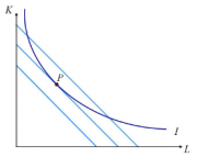 2.) Sie muss dem Produzenten die Produktion einer maximalen Outputmenge ermöglichen, also auf einer möglichst hohen Isoquante(innerhalb eines Faktordiagramms) liegen. Analog zu den Indifferenzkurven beschreiben Isoquanten welche Inputkombinationen die gleiche