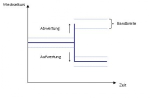 - Adjustable Peg: der Wechselkurs wird innerhalb einer bestimmten Bandbreite gehalten, die mit der Parität nach oben oder unten verschoben werden kann